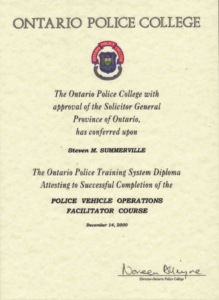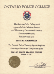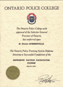 Steve has instructed thousands in the areas of defensive tactics, crisis management, the management of resistant behaviour and use of force/subject control concepts and has completed courses of study at the National Expert Witness Academy, Ontario Association of Chiefs of Police, the Canadian Police College, the Canadian Emergency Preparedness College, Emergency Measures Ontario, the Toronto Police College and the Ontario Police College. Steve holds instructor certification in a number of law enforcement programs and has obtained black belt ranking in multiple martial art disciplines.