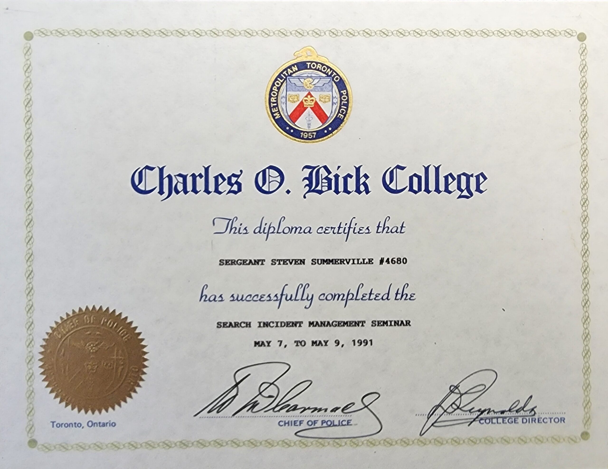 Steve completed a 24-year career with the Toronto Police Service in both uniform and detective services completing his tenure as a Staff Sergeant at the Ontario Police College in the “use of force/ defensive tactics” section.